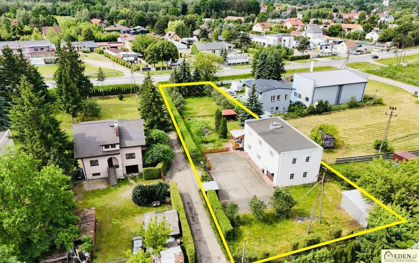 Nieruchomość z dużym potencjałem, w sąsiedztwie zabudowań domów jednorodzinnych i zakładów usługowo-handlowych.