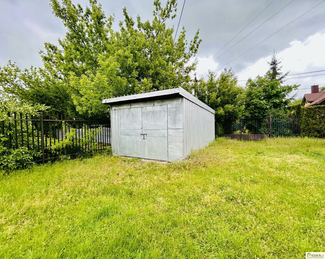 -Blaszany garaż, który można zagospodarować na np. schowek sprzętu i narzędzi ogrodniczych, grilla, mebli sezonowych czy rowerów.